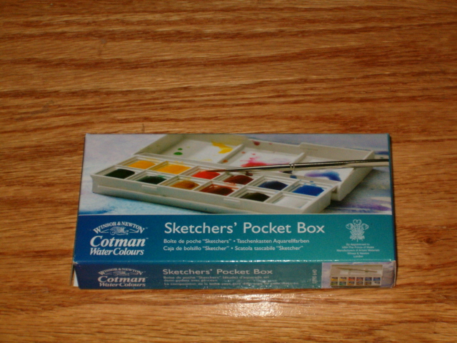 Then it was a trip to A.C. Moore, another store we don’t have here locally. Although I went in to purchase a 2B graphite pencil (I’ve almost used mine totally up!) I had to browse. I’ve been wanting a portable watercolor something for quite a while now. I’ve got tubes of wc, but they aren’t really for just carrying around, even though they’re in a nice box. And I’ve got wc pencils, but it’s not quite the same as direct painting.