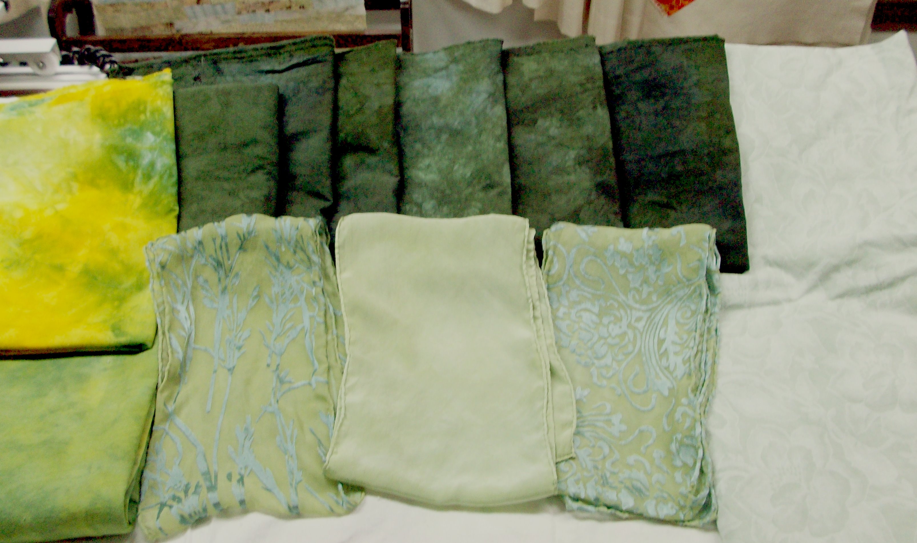 I’ve been dyeing more fabrics and some scarves for the Lincoln Quilters show in August that I’ll be vending at.  Yesterday was a day to add some greens into the inventory.