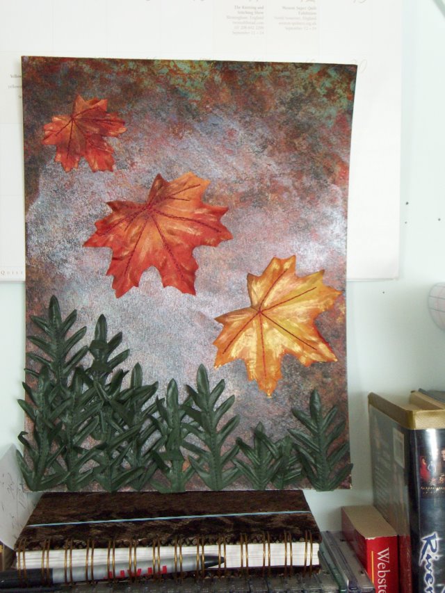 So, I dumped the entire basket onto the rug and found some leaves I thought would work. Then, taking them to the studio (yes, after I cleaned up the mess on the rug! lol), I started working.