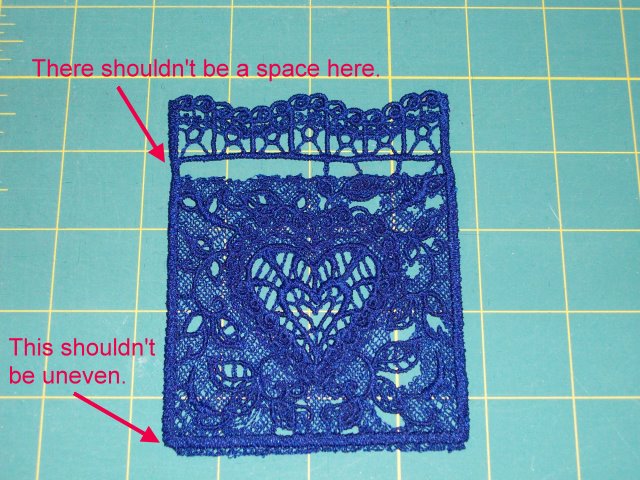 Always check your bobbin, especially when doing lacework on the embroidery machine.