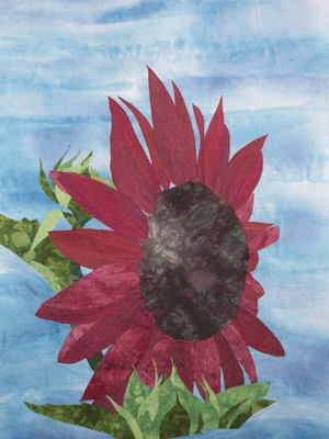 Jan took a picture of a sunflower that was spectacular…..and with her permission I used it in a quilt.  This is one of the pieces I use when I give my lecture “Turning a Photograph into a Quilt”.   In the past, I’ve used this as one of the “in process” examples.