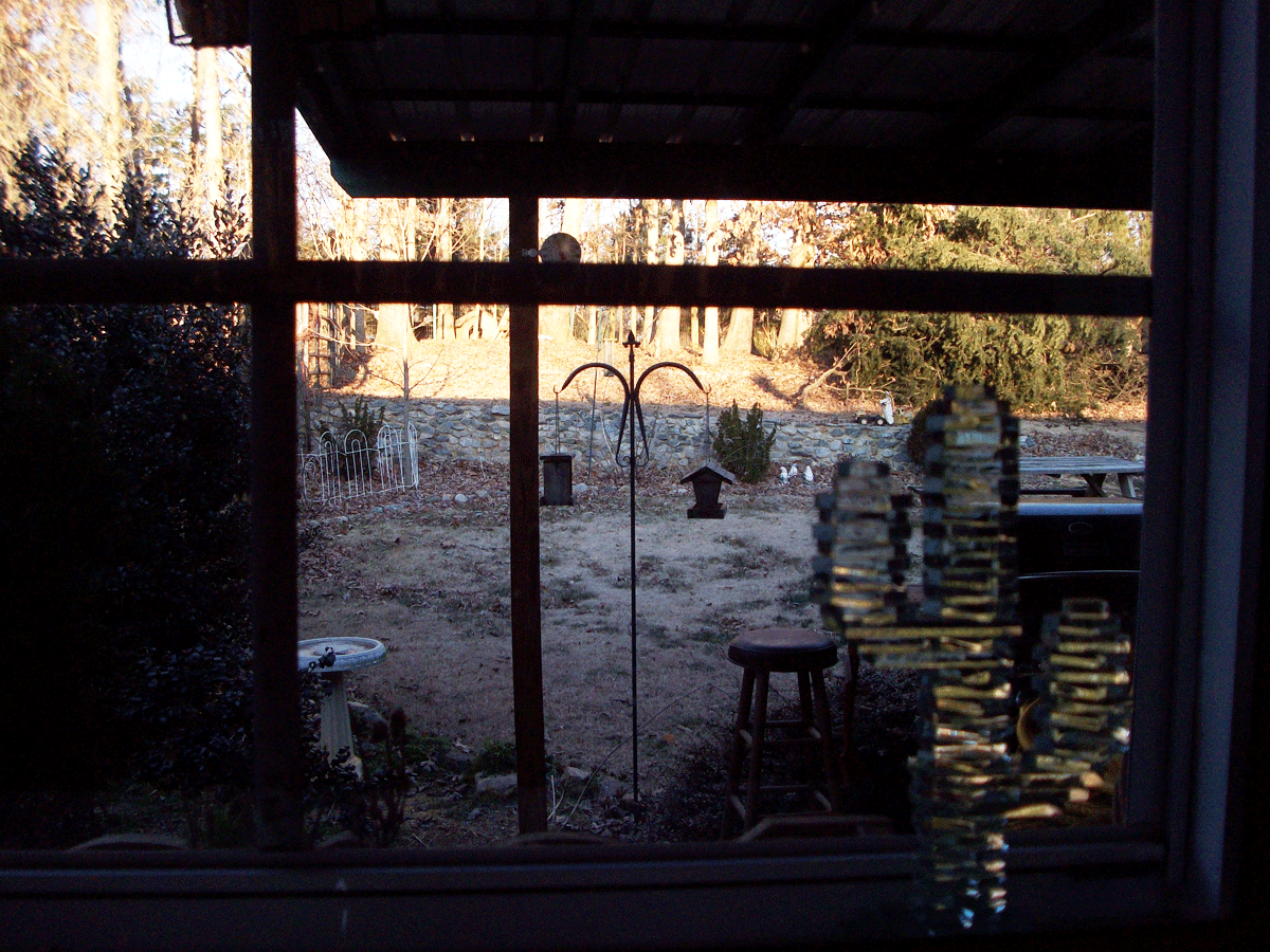 We have squirrels on our property. And one in particular has decided he wants to feed at the bird feeders. Small problem wth that…..the feeders are right outside the kitchen…..across the deck……maybe 20′ on the diagonal from the doggie door. That way when I look out the kitchen window I see this: