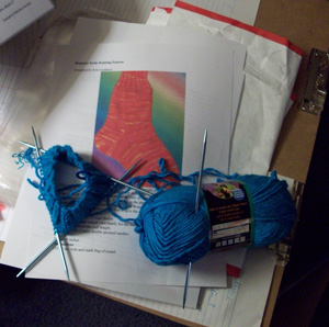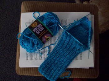 My feet are always cold these days. And I am having a hard time finding socks that will fit both feet due to an ankle support I’m wearing. So, I decided that other people knit socks, why not me?