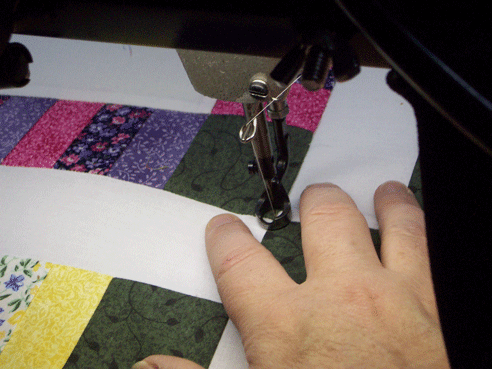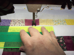 So with white knuckles gripping the steering wheel (oh wait that was driving the other day)….. anyways, I proceeded to slow down and do my SID without the use of a ruler!!!!! And I like it better! Of course it’s slower, but I can see easier where I’m going and I have more control if I need to skootch (is that a word) the fabric a bit. It’s something that has to be done SLOWLY though…..as you can see, your fingers are very close to that needle.