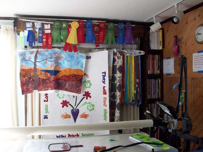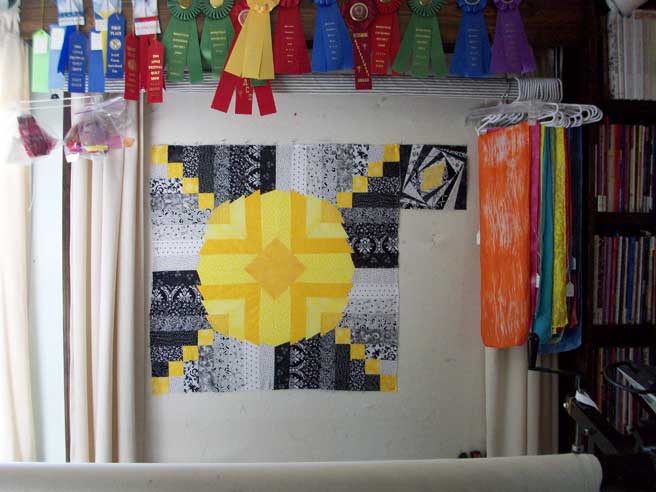 Yes, underneath that completed quilt, and that class sample, and those waiting to be quilted quilts of mine, IS a design wall.