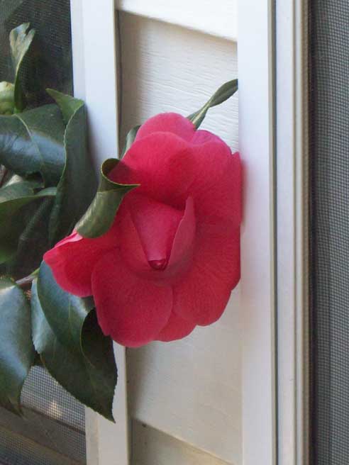 The camellia showed me it’s first flower while I was having coffee: