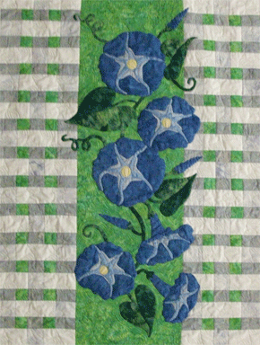Then all that was left was to set in my morning glory vine in the borders and check for any missing details and we have a finished quilt (or a quilted one):