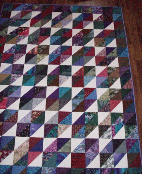 And finally a pretty, pretty jewel toned scrap quilt for another customer. I really like her layout on this, so simple, such an effective use of color placement: