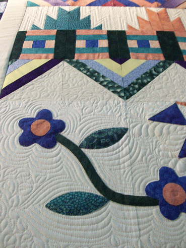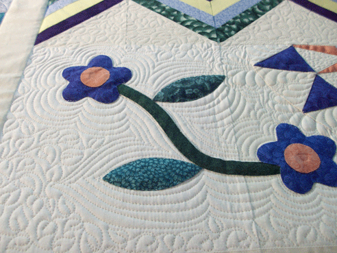 The applique I did before I really knew what I was doing with machine applique, but it’s not to bad for an early try at machine applique. In this case I can say good tools make all the difference as the machine applique I’m doing now looks so much better!