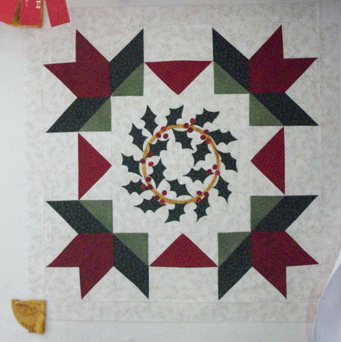 First up is a small wall hanging I’m working on. This was going to be a piece for a beginning machine applique class, but it turned out to have too many sharp points for that, so instead it will hang in the house for the holidays….someday.