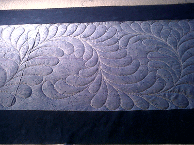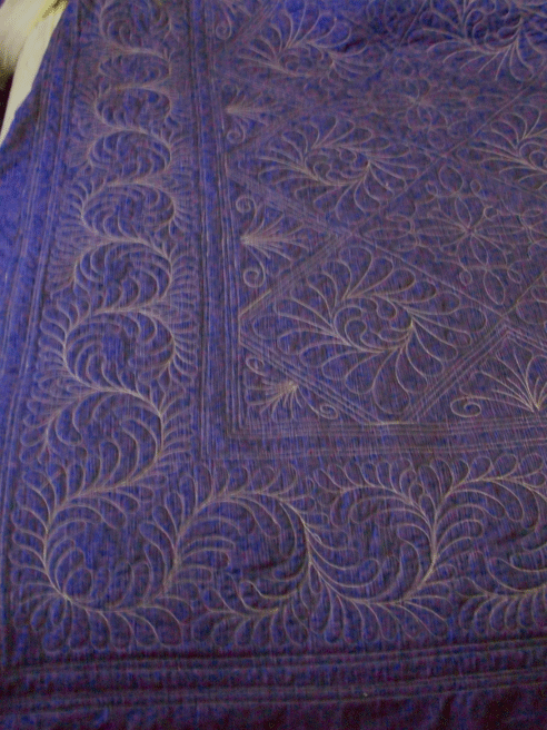 2. Oh this is just lovely! I am hankering to start a blue and white series in 2011..I think I will have to remember this setting! I love all the quilting, but esp the corner motif. I have been looking for one for a blooming nine patch that will go on the frame next for me. Great tip using the foil too…