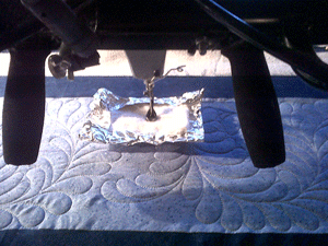 The last photo in the gallery is how I avoid oil drips when the quilt leaves me minimal room on the sides of my table (in case you were wondering).  Although I do park it just off the machine with that little foil/batting contraption.
