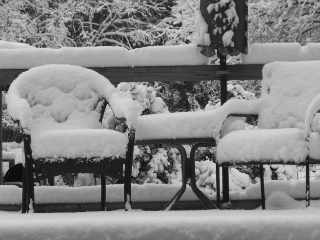 We had snow on Christmas here in North Carolina. Measurable snow! I’m not sure if Charlotte proper actually got measurable snow, last I heard at 11:30 last night the readings at the airport hadn’t quite been deep enough yet to be “measurable”; but it sure was measurable here. When I went to bed last night we had 3-1/2″ and it was still coming down. At last check today, after it finally stopped, we were over 5-1/2″ of snow!
