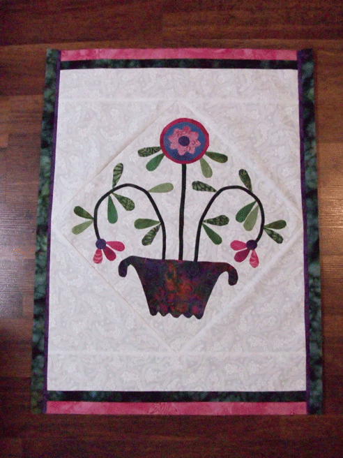The following month I received Jackie’s quilt.  Our theme for the second border was Applique and I knew I wanted feathers.  Not finding anything I felt was suitable for the quilt, I designed this feather border to use on her quilt.  I’m sure I’ll be using it again in the near future on another quilt as well!