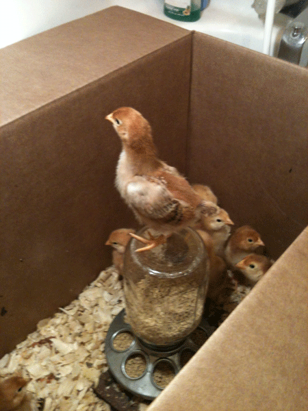 ROTFLOL That was a close call 😉 I started out with a rubbermaid tote deep and put chicken wire over it. For the last batch of multiple chicks I had a LARGE dog kennel covered in chicken wire. Today as you saw 😉 I just put out a small dog crate with no bottom in it covered in chicken wire. The large crate I had the tray in with pine shavings…. I’m sure someone has told you, but just in case…. cedar shavings are toxic so get the pine shavings. Enjoy every moment!!!