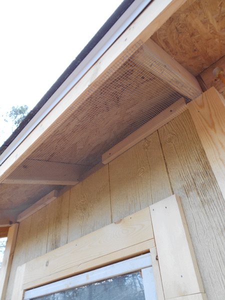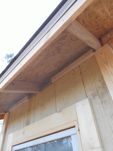 We (mostly he) put in wire mesh to secure the eaves and allow ventilation: