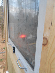 Although I don’t believe his intensity is aggression to the chickens at this point, more likely it’s curiosity, he (and the 3 others) are the reason we’ve gone to great lengths with security.  And will continue that extra precaution as we build their run.
