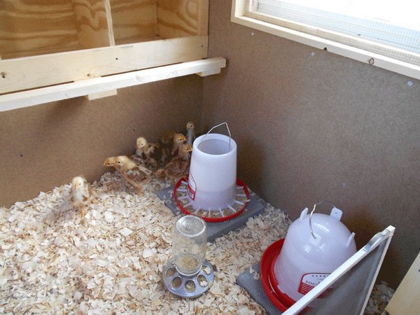 1. What kind of chickens do you have? They look a lot like my second batch and I don’t have a clue what I have. Your coop is looking great. My chicks are still in my sewing room so I know how glad you are to get yours out.