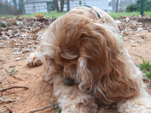 Brandi is making me wonder why I paid for grooming as all she wants to do is play in the dirt and leaves: