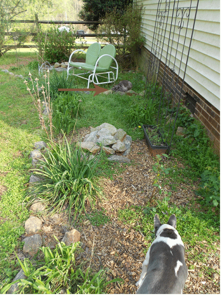 See the brown arrow pointing to her. I know she does this just to draw my attention to all the digging work I need to do that she would be “oh so happy” to help me with!