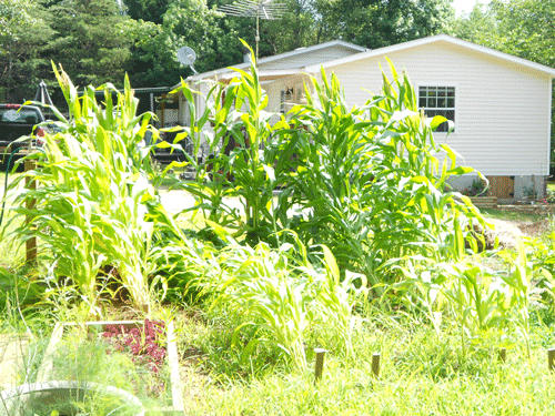 See how tall and straight the corn is? Do you see my heirloom tomato (behind the zucchini trellis) standing almost as tall as the corn? Isn’t Wasn’t it lovely?