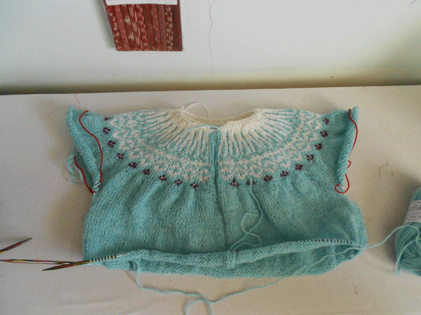 But my interest has been sidetracked by progress on my Top Down Icelandic Sweater. Now that I’m working the body section, I really want to get that and the sleeves done so I can STEEK it! Yes, I’m actually getting excited about cutting my knitting! LOL
