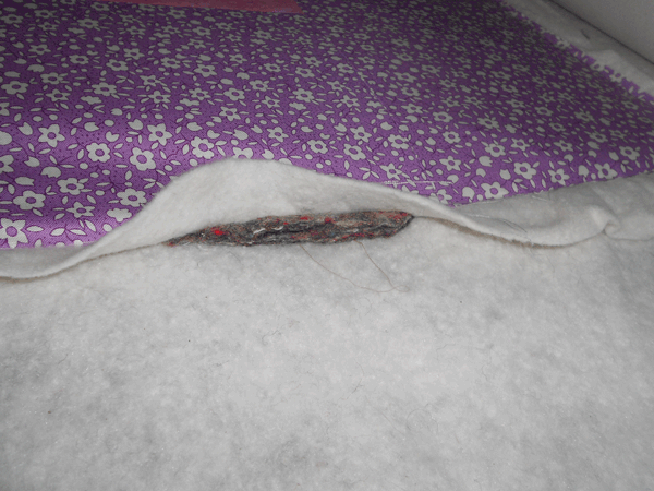 The quilt sandwich is now on my work table, to have this small amount of quilting removed, and in preparation of hand tying.