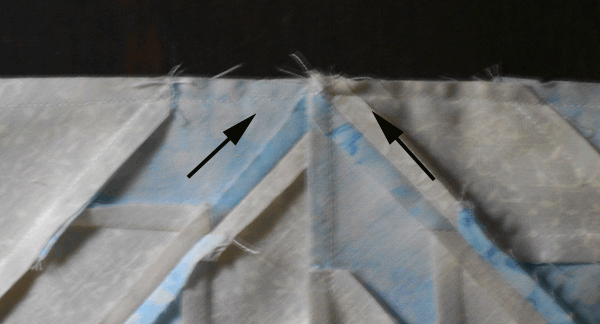 The fault of the centers was my machine.  I took along a 1941 Featherweight that I just love.  And while it goes great for some things, when I encountered the bulk of the center, the machine consistently wobbled around the bulk rather than over it.  I did this block twice, then tried on another block and each time the same thing, wobbles between the arrows so I put it aside to finish on one of my newer machines.