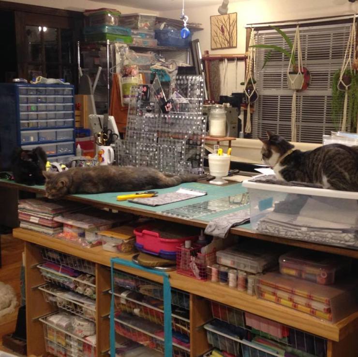 In the studio, I’ve been trying to sew, but I have three distractions now: