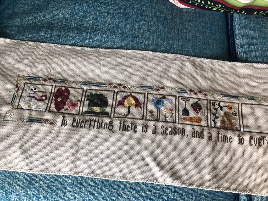 And finally some cross stitch. I don’t know why I set this aside, it’s a really fun stitch. The pattern is called Monthly Markings and I’m done with July and starting August.