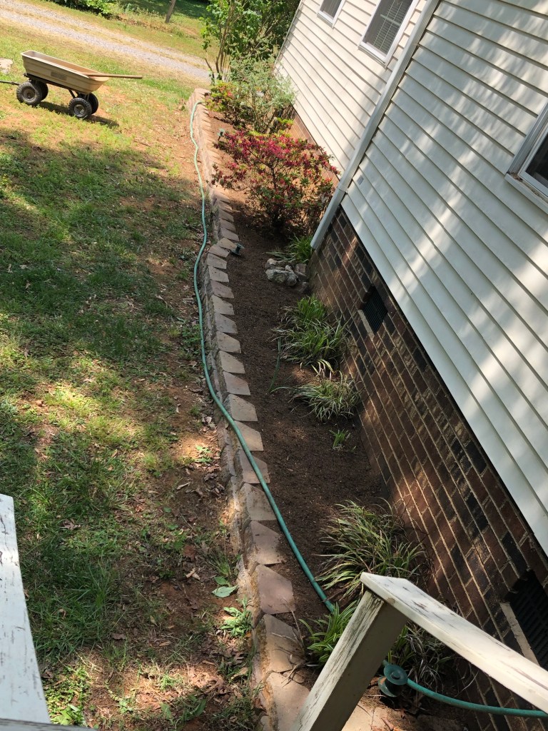 There’s still another 10’ on the front and 20’ up the side to do. And I’ve barely made a dent in the 5 cubic yards of topsoil. And I’m done. And then there’s the north side bed that needs completely rebuilt and edged with brick and filled. We should have planned for long term and used brick the first time!