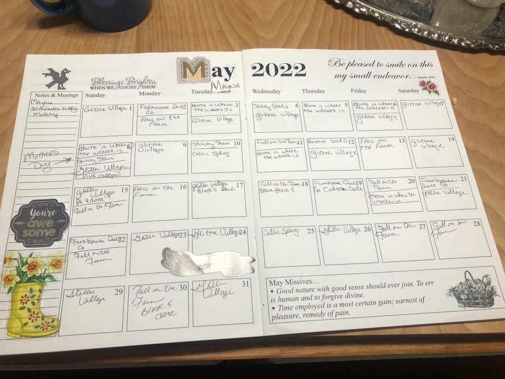 And it would have likely been done if I hadn’t started the May Calendar Crates Farmhouse Quilts piece. But I needed a break mid-month to stay motivated.