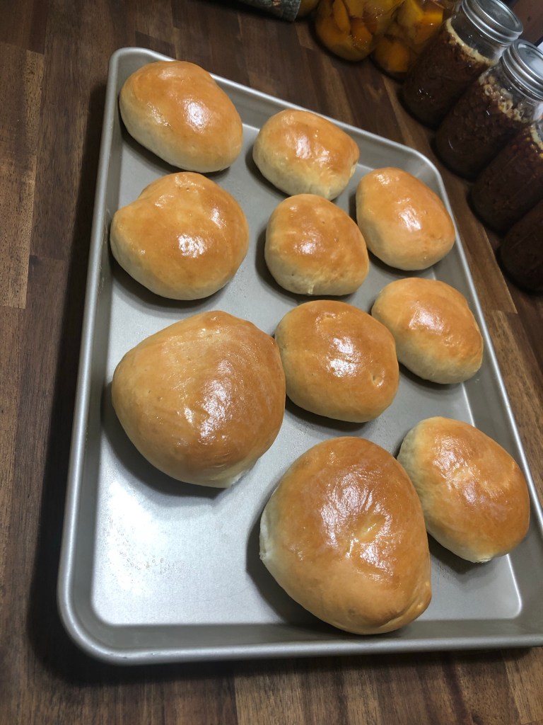 Earlier in the day I baked some sandwich buns. This has become my new favorite “bread” to bake. And while I am not yet consistent in sizing or shaping, they still taste great!