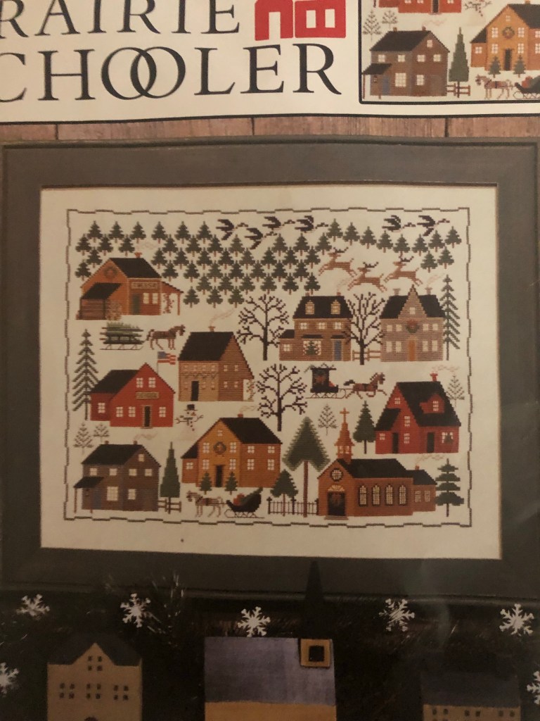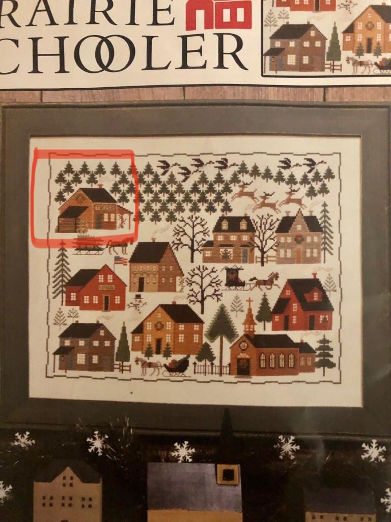 I’ll then start 2-3/4” in from the top left corner and for January I’ll stitch the top corner and first house.