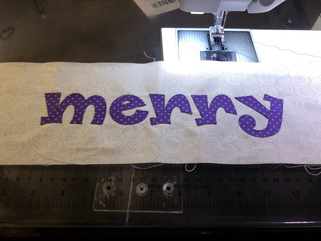 Last night I did the edging on the word “merry”. I’m also using a machine I’m not as familiar with which increases the slowness. It’s not my best work, but I’m getting more comfortable with the machine as I continue