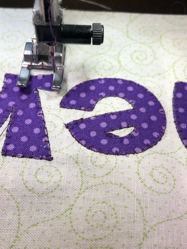 The fabric pieces are fused to the background (a form of applique) and are held in place long term with the machine stitching. The green swirls are just a print in the background fabric. I liked it better than a solid background fabric. I won’t be following them to quilt, but a person could if they were ambitious.
