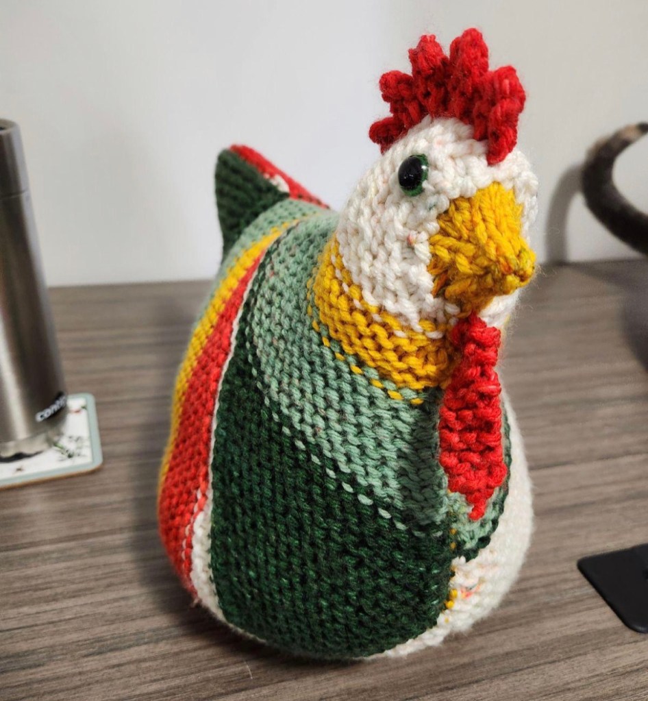 Does that concept interest you? If so, there’s a group on Facebook “Emotional Support Chickens for Helene” that is local and could use your support. And they can be either crocheted or knitted, I just fell in love with the crocheted granny square ones