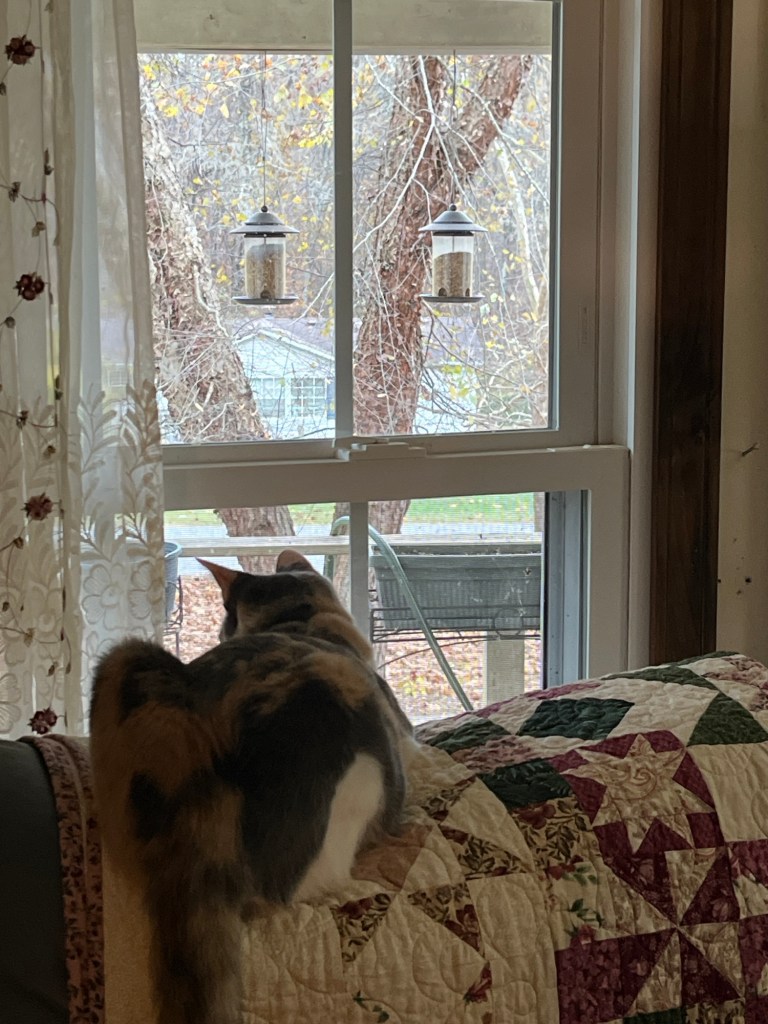 And through it all the youngest cat is unperturbed as long as she can watch “cat tv” aka the bird feeders.