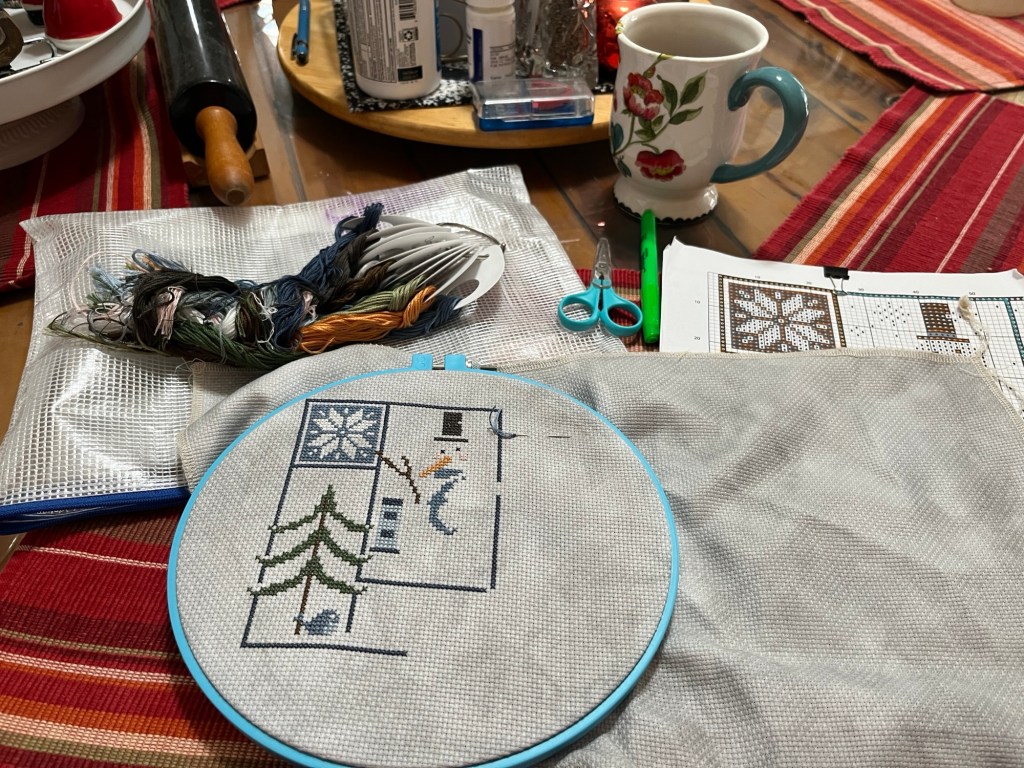 So today as I babysit the canner, it’s also cross stitch time.
