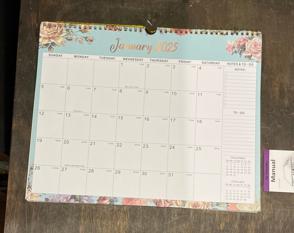 I’m also working on my 2025 calendar, monthly studio goals (adjusted for seasons), and long term goals. These go on a calendar in my studio and in my planner. Right now the calendar is a blank slate as I just opened it, but the planner is already filling up.