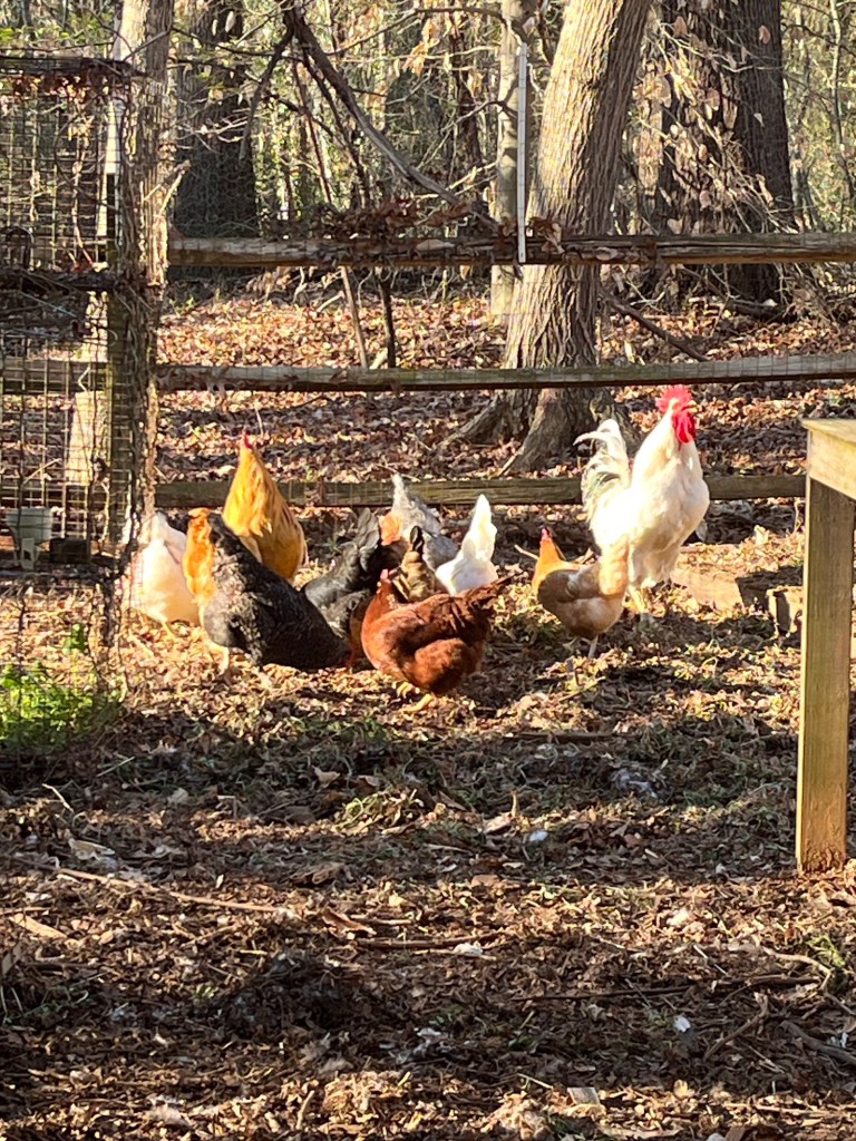 That was a lot of work, even with four of us working on it! And the chickens are happy as they had about six wheelbarrow loads of fresh pulled weeds to peck through. This morning they’re still pecking through them.