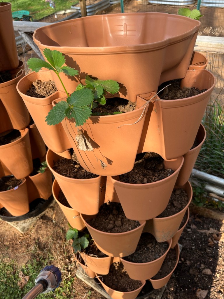 Some of my strawberries in the Greenstalk planters survived. Many are being replaced. We did move them to a location with more sun. Under the tree they just didn’t get enough sunshine or rain to thrive. Another game changer, we put them on spinner’s this year! I can tell already that will make a huge difference!